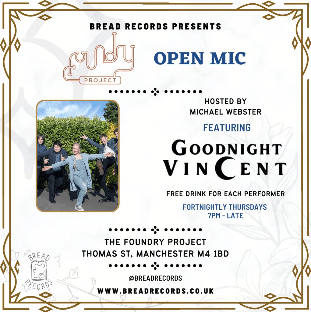 it’s bound to be a belter, we’ve also got the amazing talents of Goodnight Vincent as our feature act – they’re currently on tour and we’re super stoked to be able to put them on here in Manchester!
