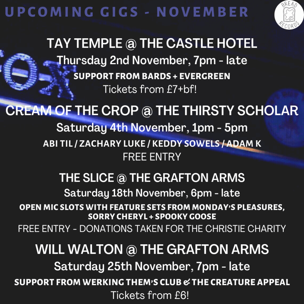 we’ve got an incredible November in store for us, kicking off tomorrow night at The Castle Hotel with Tay Temple on her hometown show of her UK tour, with support from BARDS and Evergreen ![]()