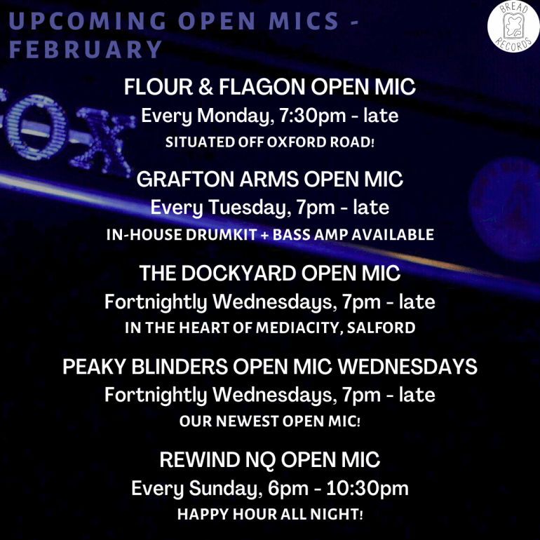 plus, with all of our open mic nights at Rewind NQ Flour & Flagon Grafton Arms Peaky Blinders Manchester and The Dockyard – there’s plenty to get involved with, just get in touch with our michael webster for slots ![]()