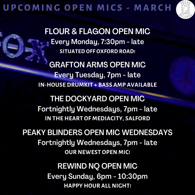plus, with all of our open mic nights at Rewind NQ, Flour & Flagon, Grafton Arms, Peaky Blinders Manchester and The Dockyard – there’s plenty to get involved with, just get in touch with our michael webster for slots ![]()