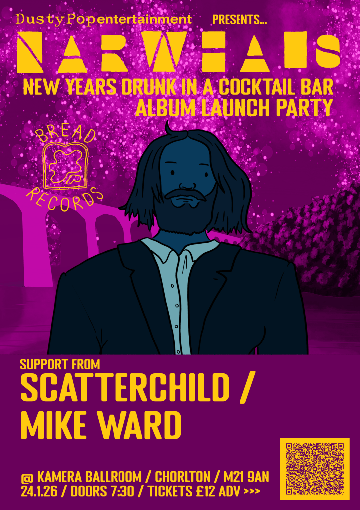 we can’t wait for the album launch for Narwhals new album “New Year’s Drunk in a Cocktail Bar“, at Kamara Ballroom, above The Lloyds in Chorlton ![]()