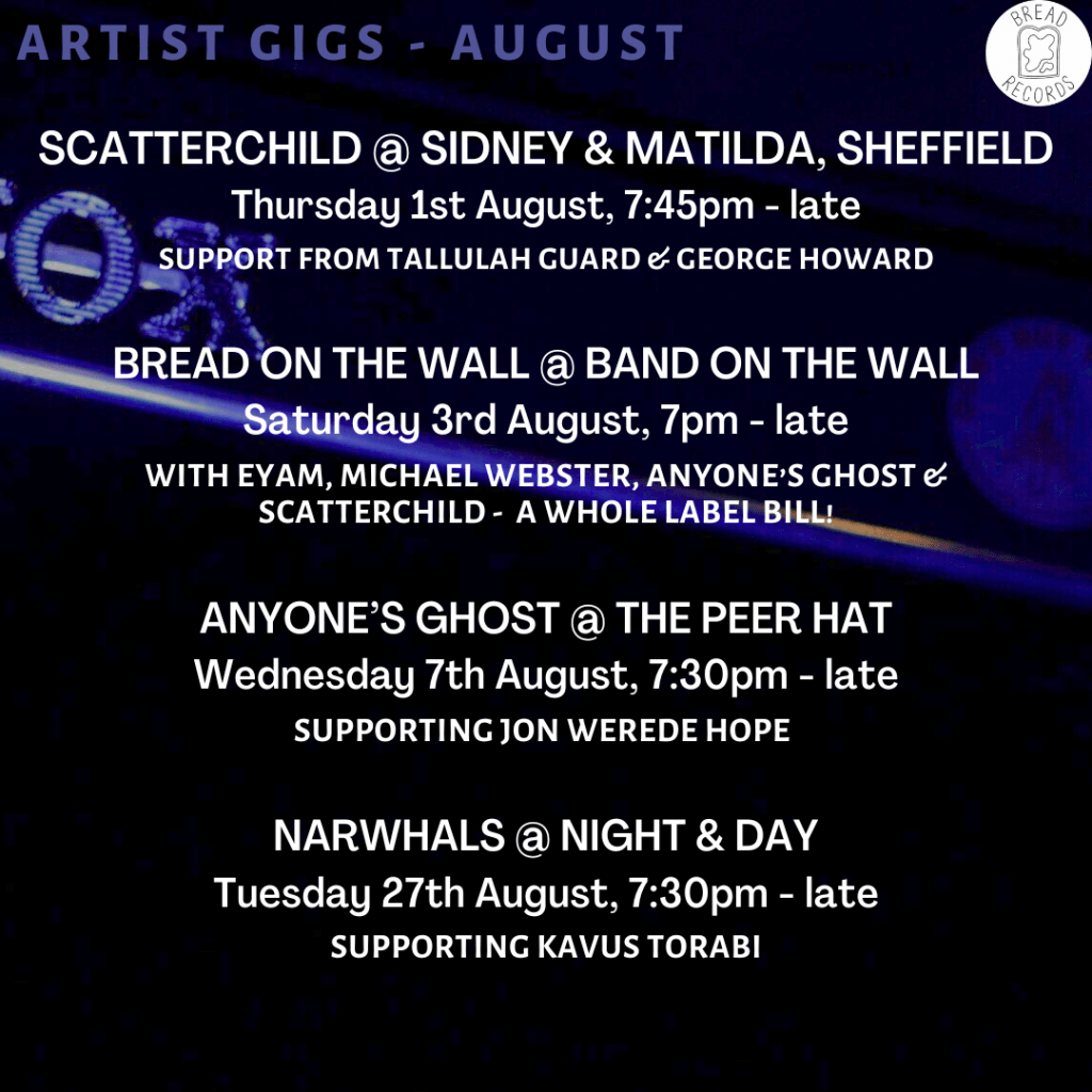 this coming Saturday we are at Band on the Wall for our Bread On The Wall show, with a full lineup of label acts including Scatterchild Anyone’s Ghost michael webster and Eyam – it’s gonna be an incredible night ![]()
