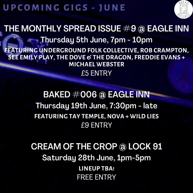 and finally we return to Lock 91 on the Saturday 31st of May for our “Cream of the Crop” show, with the amazing Eyam, Toenails, indefinite articles, Emma Echo and Robert Hurst – we’ve got some of Manchester’s finest up-and-coming talent performing for us. 1pm start and running through til 5, and free entry! 🌾