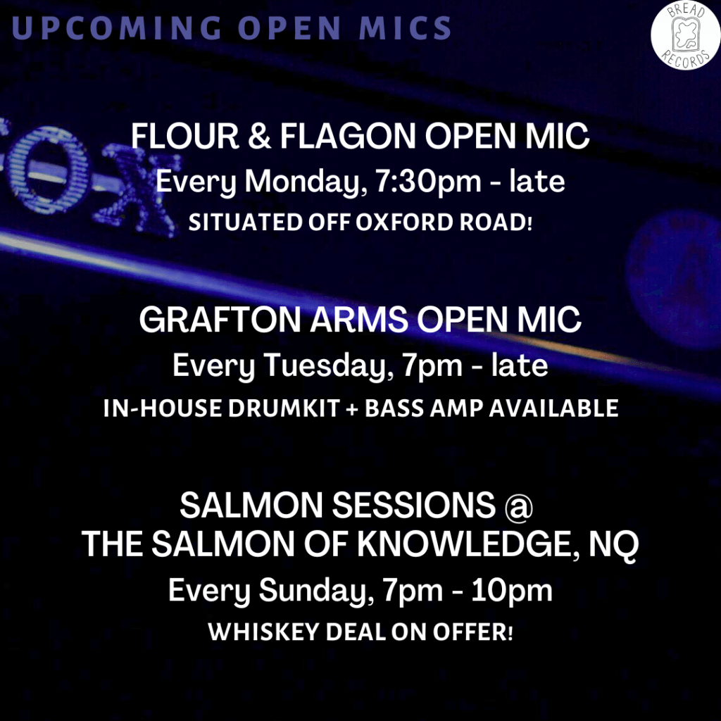 and with regular open mics at Flour and Flagon, the Grafton Arms and The Salmon Of Knowledge – there’s plenty to get involved with! 🍞
