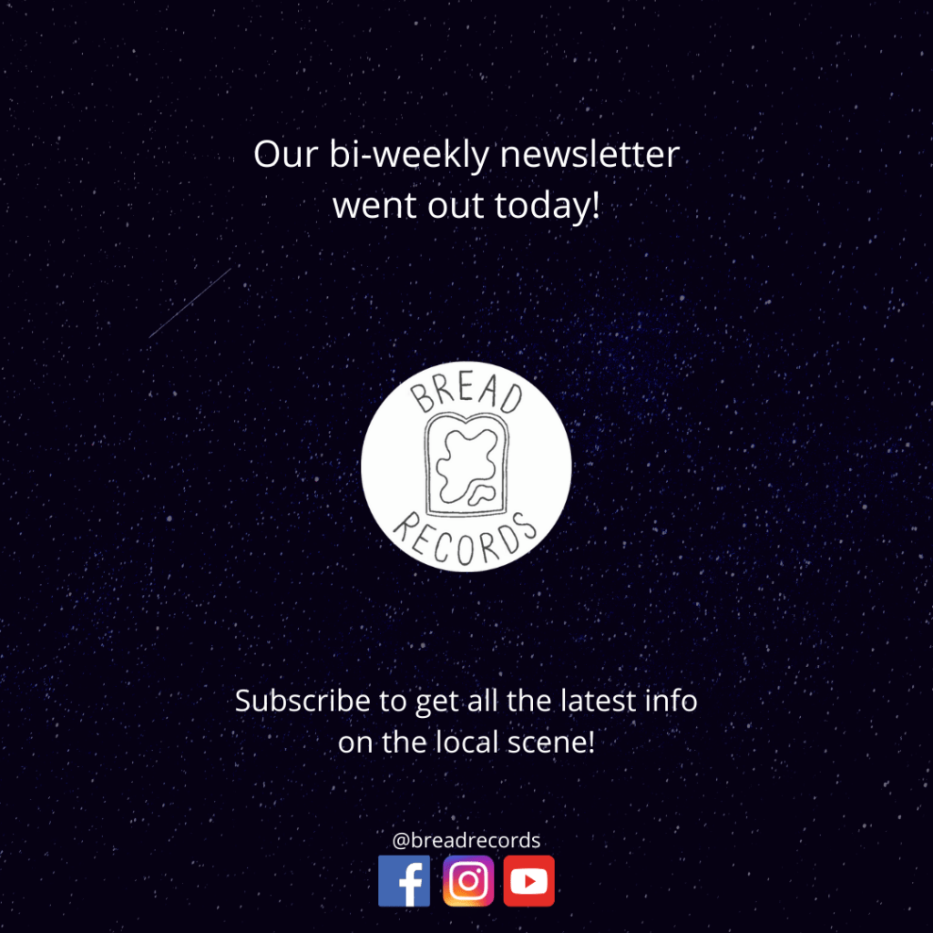 we do a fortnightly live stream, a weekly new music feature, a monthly radio show and a weekly local music playlist! we also do a fortnightly newsletter as well! lots of things for you to sink your teeth into. you can find it all over on our website at www.breadrecords.co.uk 🤘 (we’ve even got gigs to announce too!)