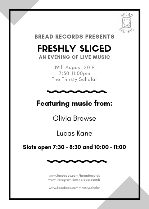 Come on down to Freshly Sliced! Featuring Olivia Browse & Lucas Kanethis Monday 19th August to catch them perform! We’ve also got some open mic slots available so come play us some tunes!! 🍞