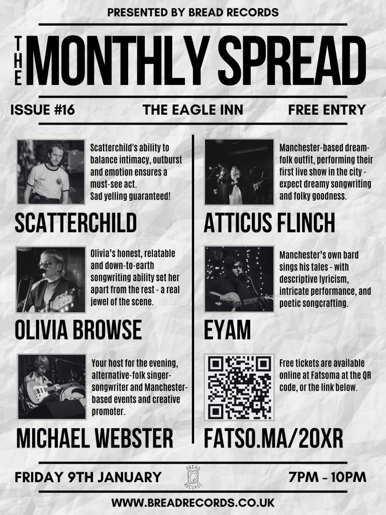 we’ve got a superb one in store, with an all-Bread lineup including Scatterchild, Atticus Flinch, Olivia Browse, Eyam and michael webster – sadly Narwhals can’t make this one due to illness. ![]()
